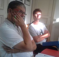Au premier plan, Pascal Perrin photographié ce 2 octobre 2013 en compagnie d’Alan Duperrin de Questembert lors de la réunion RADAR à St Brieuc.