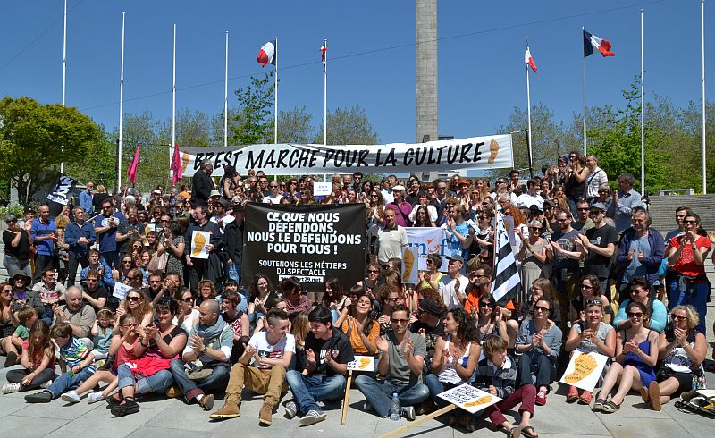 Forte mobilisation, ce samedi après-midi, au bas de la place de la Liberté à Brest. Nous étions 500 à participer à une "Marche Parlante pour la culture", solidaires avec les intermittents et pour défendre un secteur fragilisé.