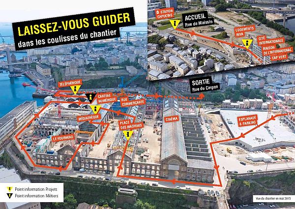 Cette visite d’une heure environ sera ponctuée de temps de rencontre et d’échanges avec les chevilles ouvrières du chantier, de panneaux d’informations sur le projet des Capucins, de renouvellement urbain de Recouvrance et du téléphérique. Rendez-vous de 10h à 16h ces samedi 10 et dimanche 11 octobre 2015.