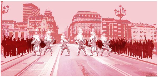 Spécialiste des déambulations, la compagnie explorera avec ce nouveau spectacle vibrant et sonore un format hybride, enchaînant une partie déambulatoire et un développement sur scène, où deux structures de percussion en hauteur permettront de créer d’impressionnants « battles » de percussion et de feu. À Brest, Deabru Beltzak vient travailler sans artifice la partition musicale déambulatoire.