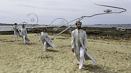 Dès 11h11, rendez-vous sur la plage des sables rouges pour découvrir Je pêche le ciel de la compagnie Schpouki Rolls : une réflexion sur la fragilité des équilibres, la stabilité et l’instabilité.