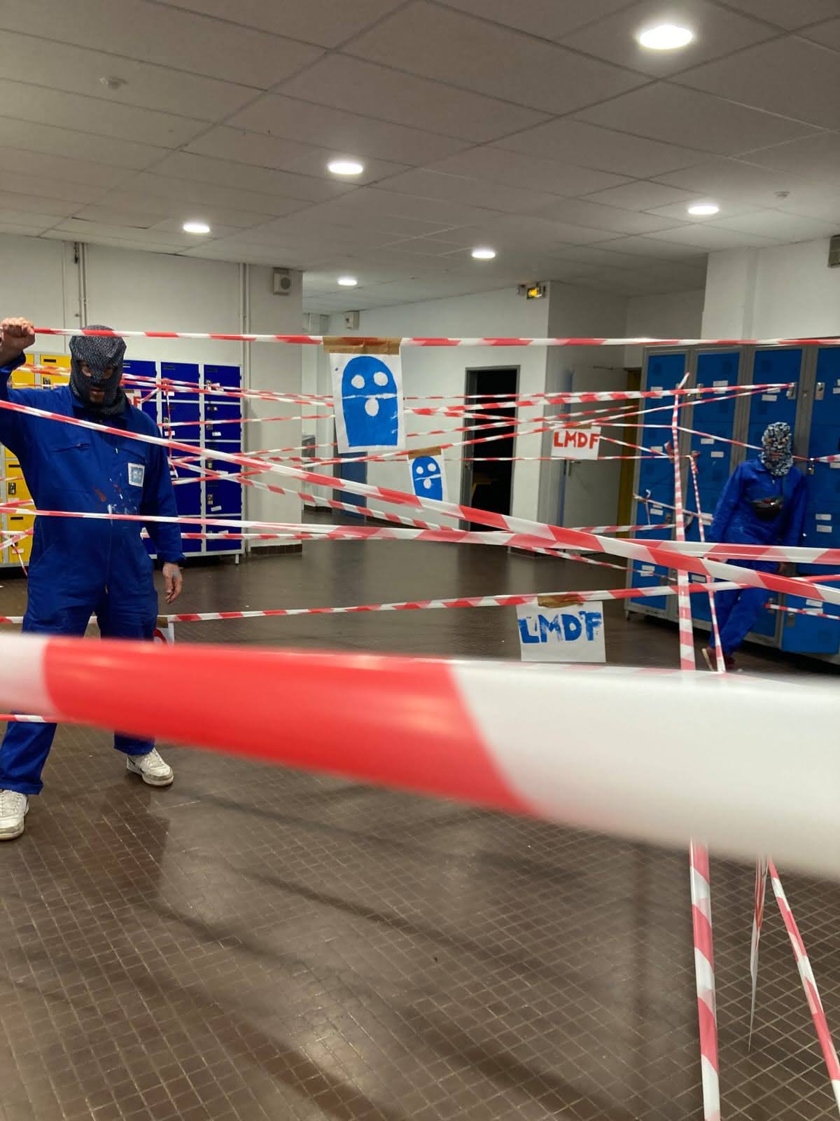 Il faut dire que dès 7 h 30, les murs du collège sont criblés de sigles énigmatiques et tremblent sous les ronflements d’un campeur anonyme installé dans la cour du collège.