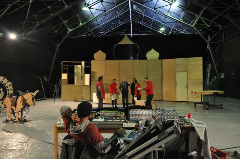 La compagnie Tu t’attendais à quoi ? est en résidence de création au Fourneau du 16 au 30 avril. Ils travaillent sur leur dernière création, Bollywood, dommage qu’on n’ait pas vu le début !, un spectacle qui commence par la fin et qui montre l’envers du décor, le quotidien d’une compagnie de théâtre de rue en racontant le démontage et le rechargement d’un spectacle.