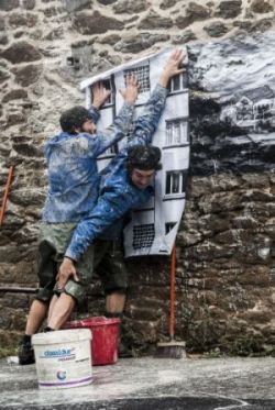 Les comédiens Yano Beney et Frédéric Rebière s’associent à Nicolas Hergoualc’h, photographe, pour travailler sur un projet mêlant art de rue et photographie. Leur première collaboration remonte à octobre 2014 lors de la « Marche autour des Capucins » où Nicolas Hergoualc’h avait pris des clichés de rues, de paysages et de riverains à leur fenêtre. Pendant la performance, les clowns-colleurs d’affiches s’étaient empressés, tant bien que mal, d’exposer les œuvres. Armés de colle biodégradable, d’un balai et d’une petite échelle, ils s’étaient attaqués aux murs en placardant 70 mètres de photographies dans les quartiers où déambulait le public.