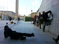 Dans le cadre de leur résidence de création au Fourneau, les 7 artistes de la compagnie ICI MEME arpentent les rues de Brest pour travailler leur nouveau spectacle : Plan B du 8 au 14 avril 2013.