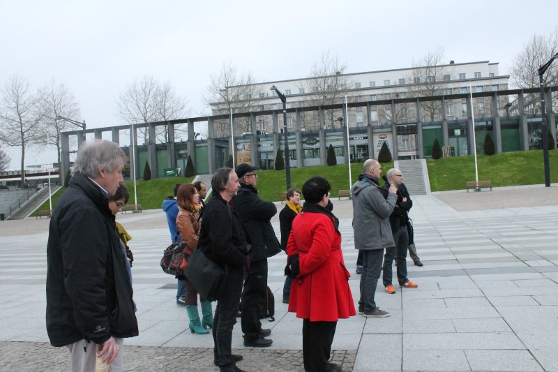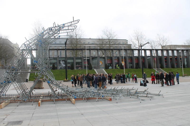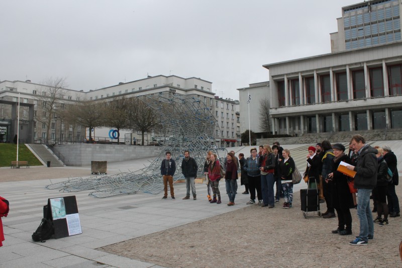 Les participants du séminaire Arts et espace Public découvrent l’installation éphémère proposée par Stefan Shankland assisté de Etienne Delprat, Yassine El Kherfih et la vingtaine d’étudiants qui a participé au Workshops dirigé par l’artiste plasticien du 17 au 19 mars...