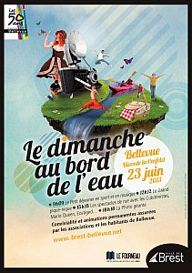 Ce dimanche 23 juin 2013, le quartier de Bellevue fête ses 50 ans sur les bords de la Penfeld. La ville de Brest, le groupe festivité du quartier de Bellevue et le Centre National des Arts de la Rue Le Fourneau vous convient au Dimanche au bord de l’eau :