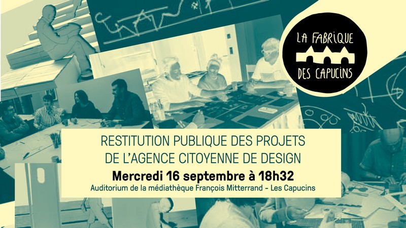 En février et mars 2020 l’Agence citoyenne de design, composée de citoyen·ne·s volontaires accompagné·e·s par des designers professionnels du collectif Les ManufActeurs, a permis d’imaginer, dessiner les plans puis de fabriquer les maquettes de mobiliers urbains expérimentaux qui prendront bientôt place dans les espaces publics du plateau des Capucins.