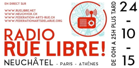 A l’occasion de Rue libre ! La journée internationale des arts de la rue et de la libre expression dans l’espace public, la Radio Rue Libre émettra de nouveau, samedi 24 Octobre 2015 de 0h00 à 25 heures plus tard !