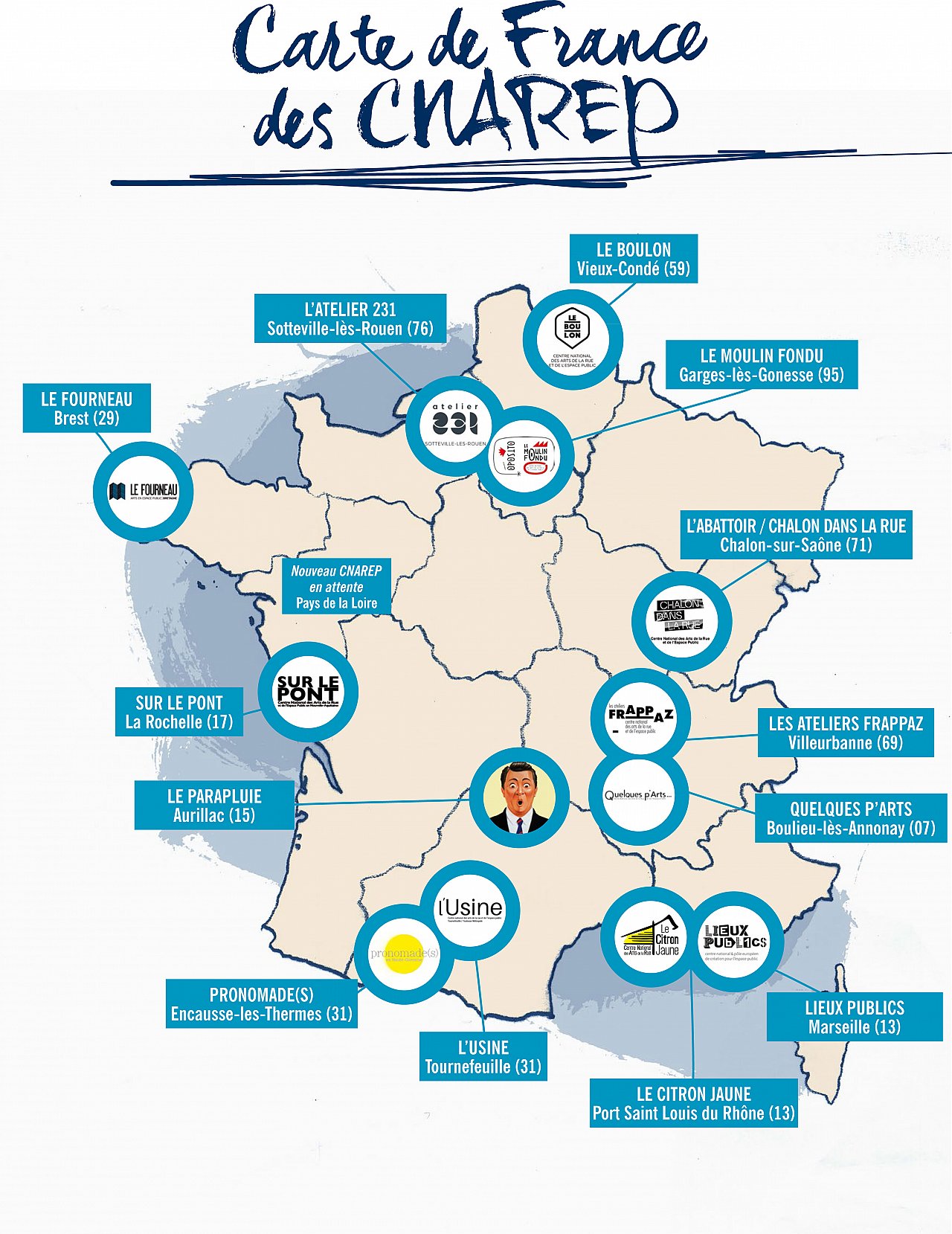 En 2005 et 2006, le Ministère de la Culture a officialisé la création de 9 Centres Nationaux des Arts de la Rue (CNAR), ce qui a été la mesure phare du Temps des Arts de la Rue (2005-2007). En 2010, le CNAR fait partie des 10 « labels et réseaux nationaux » indiqués par la circulaire ministérielle de 2010. En 2013, 3 nouvelles structures sont labellisées, en 2015, une quatrième (l’Usine). Avec Lieux publics, le centre national de création créé dès 1982, les 14 Centres Nationaux des Arts de la Rue, devenus en 2017 Centres Nationaux des Arts de la Rue et de l’Espace Public (CNAREP), ont d’abord formé un réseau informel, puis créé en 2019 une association des CNAREP, complémentaire à la Fédération nationale des arts de la rue ou aux organisations syndicales.