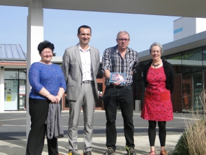 Michèle Bosseur (co-directrice du Fourneau), Gurvan Moal (Maire de Guipavas) Claude Morizur (co-directeur du Fourneau) et Sylvie Nédelec (Adjointe à la culture de Guipavas) lors de la présentation de l’événement à la presse.
