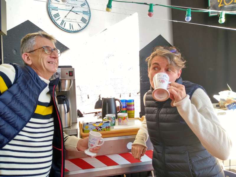 Une pause-café bien méritée après une session intense de travail autour de leur nouvelle création