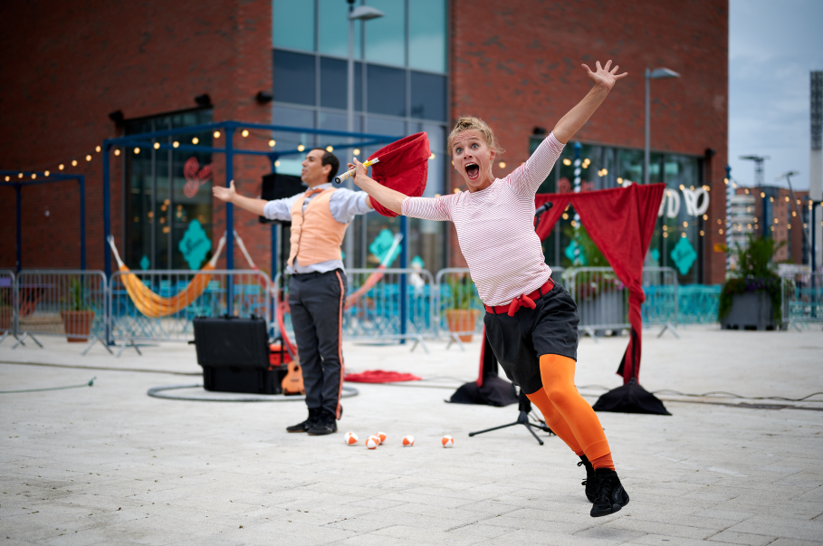 Inspiré de l’univers du conteur danois Hans Christian Andersen, Stories in the city ! nous plonge dans le monde singulier d’un couple de clowns uni sur scène comme en coulisse. Avec beaucoup d’humour et d’autodérision, la dynamique de leur vie à deux ajoute une couleur particulière et originale au spectacle. Acrobatie, surprises, musique live et comédie s’assemblent dans un mélange tout à la fois impressionnant et sensible. Stories in the city ! est un moment de plaisir pour petits et grands.