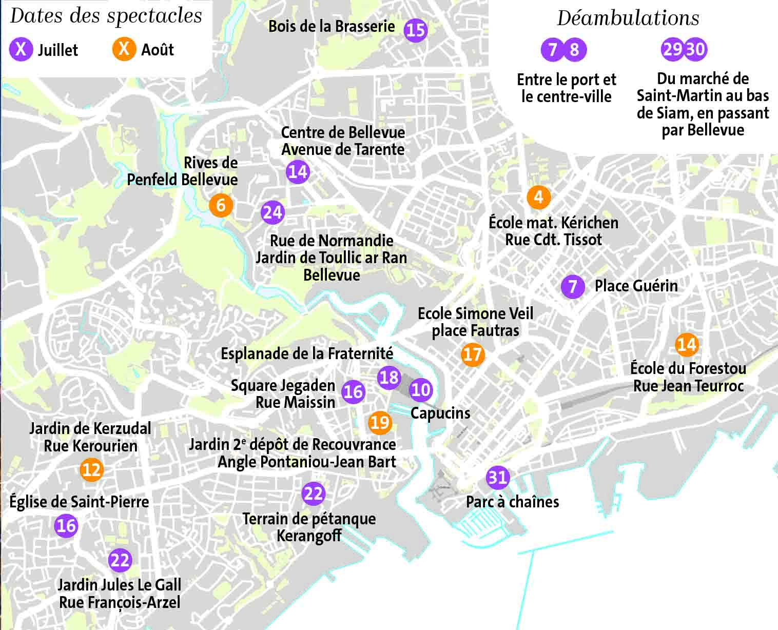 Des rendez-vous faisant la part belle aux créations récentes de la scène régionale et nationale. Outre ces temps de spectacles, conçus avec la complicité de la Ville de Brest et des habitants, certains impromptus artistiques viendront faire irruption dans la ville.